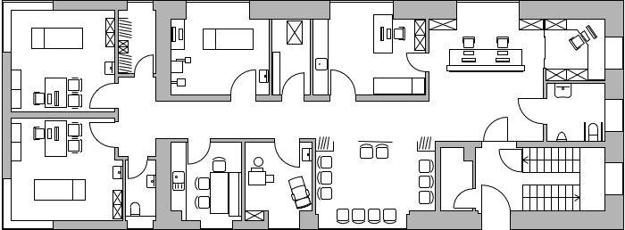 Denn mehr noch als bei Patienten mit körperlichen Beschwerden, sollte hier eine unaufdringliche Aufenthaltsqualität entstehen, wohltuend dezent, um die Menschen mit psychischen Erkrankungen nicht zusätzlich zu belasten. Klare Strukturen und nur einige frische Farbtupfer sorgen dafür, die Patienten nicht zu überfrachten. Die Räume sind vom Grundriss her in einem langgezogenen Rechteck angeordnet. Es herrscht so auch in der Innenarchitektur der Praxis die Klarheit, für die der Arzt sorgen will: Die Behandlungsräume sind weit abgelegen und bieten so einen zurückhaltenden und diskreten Rahmen für das Gespräch und seine Behandlung. Gleichzeitig sorgt die geradlinige Aufteilung der Praxiselemente natürlich auch noch für einen reibungslosen Arbeitsablauf.